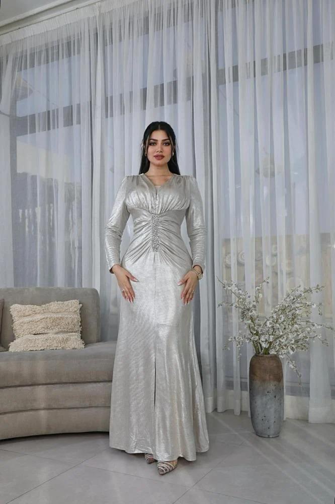 فستان سهرة انيق بكرستال من الخصر